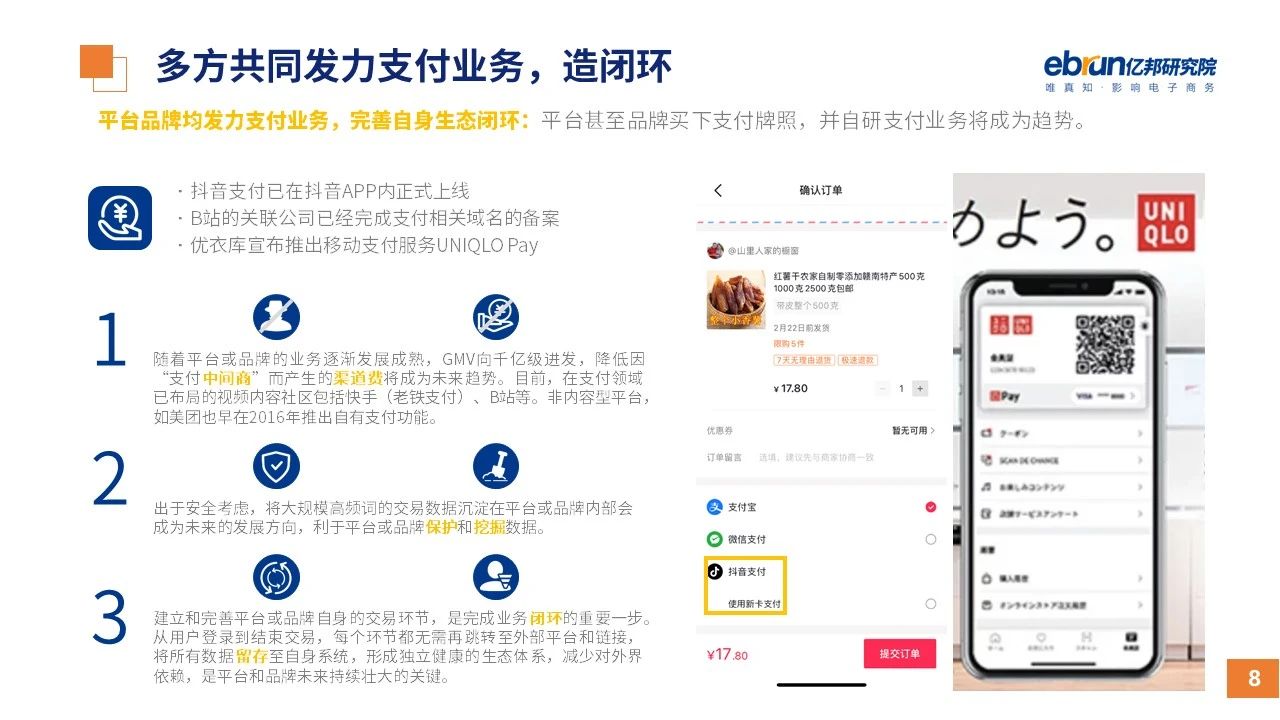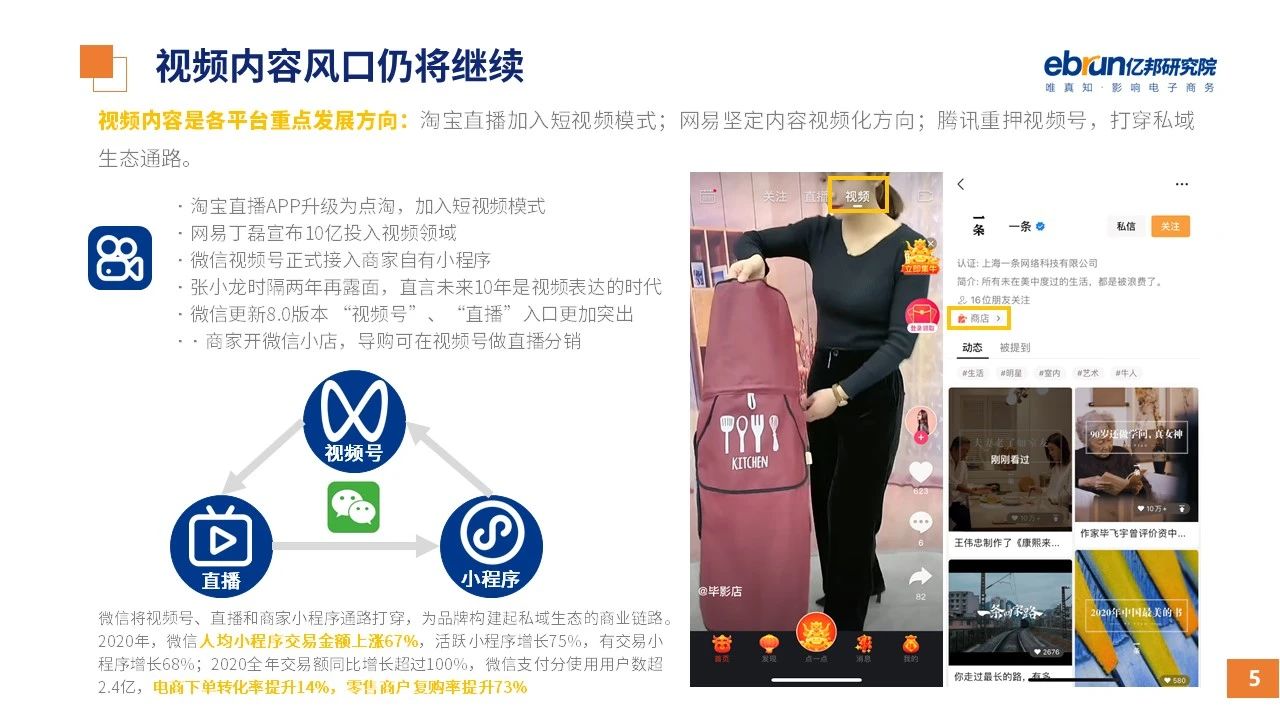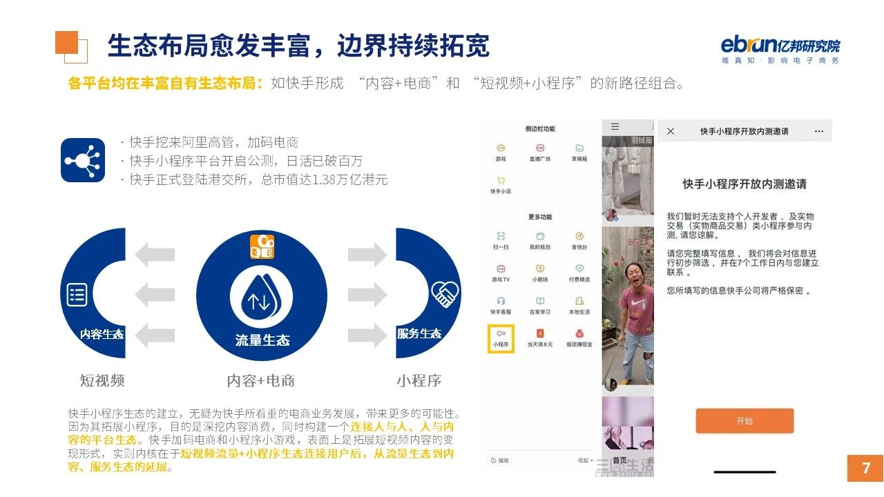 縱觀2021年1月,各平臺(tái)豐富自有生態(tài)布局,如淘寶直播(點(diǎn)淘)加入短視頻模式、騰訊重押視頻號(hào)、快手加碼電商和小程序、抖音推出支付等;視頻內(nèi)容成為各平臺(tái)未來重點(diǎn)發(fā)力方向;“九不得”新規(guī)發(fā)布后社區(qū)團(tuán)購仍熱情不減;國家和市場對(duì)互聯(lián)網(wǎng)巨頭和電商相關(guān)消費(fèi)加大監(jiān)管力度……你信和不信,你知道和不知道的,都在這份億邦動(dòng)力研究院正式發(fā)布的