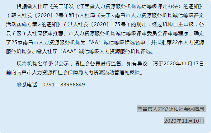 我市發(fā)布人力資源服務(wù)機構(gòu)誠信等級候選名單及推薦名單~